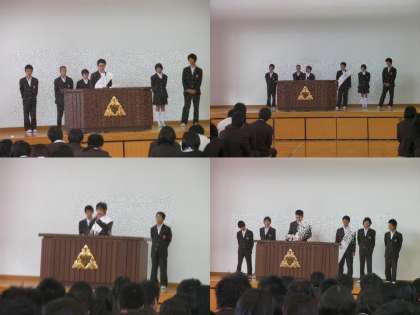 各候補者が立候補の動機、公約等を全校生徒の前で演説しました。
