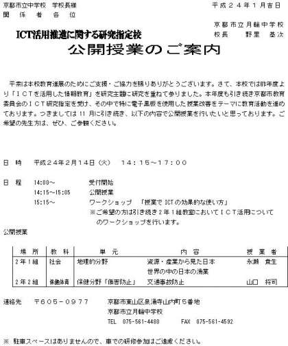 2月14日に公開授業を行います。案内ができましたのでご覧ください