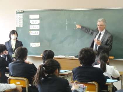 5月15日,朝1時間目からアメリカ,ミシガン州のウェスタンミシガン大学教授のPau(ポール)先生が月輪中学校に来られ,主に英語の授業をご覧になりました。