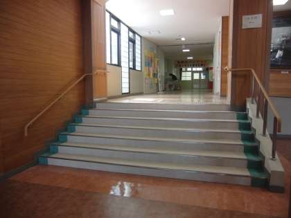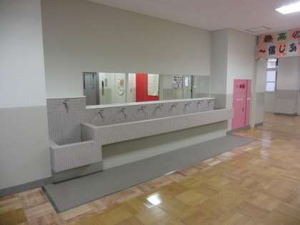 玄関の教室に上がる階段が6年生を迎えるために段差が低くなりました。また階段を上がったところに手洗い場を新たに作りました。(写真を参照ください)