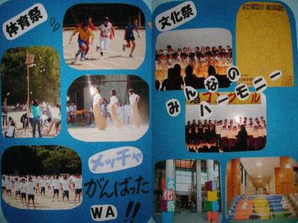 写真は体育大会と文化祭、部活動の硬式試合と地域・園児との交流の様子です。