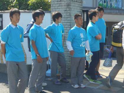 今日は揃いのTシャツを着て,おはようの声かけをしてくれています。