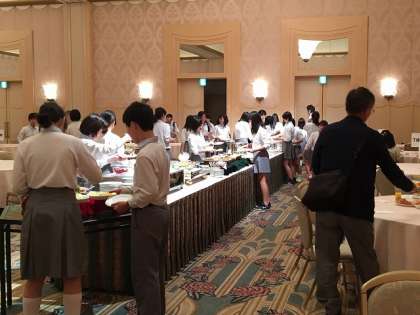 6時起床。洗面、部屋の後始末をして、7時30分朝食です。バイキングの様子です。しっかり寝ましたか?最終日気合いを入れて頑張りましょう。