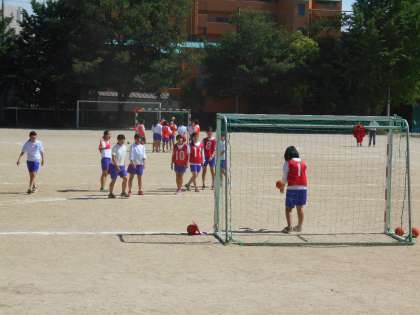 2年生の研究授業は石田先生の保健体育です。テーマはハンドボールの授業でした。