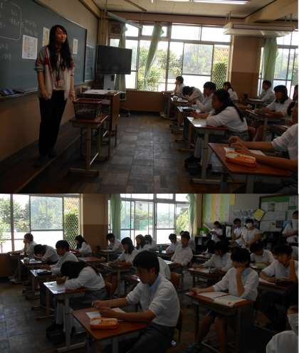教室は3年7組で,副担任の上山先生が授業をされました。