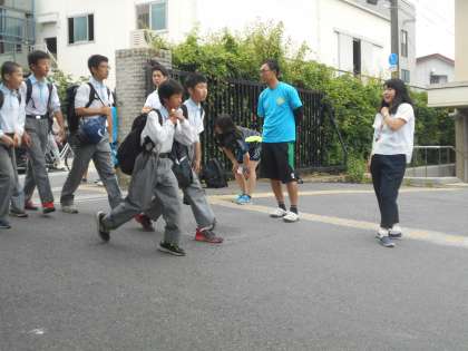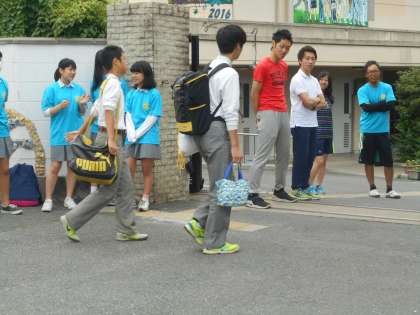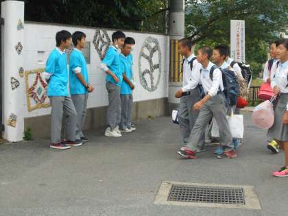 火曜日は生徒会本部の日です。そろいのTシャツが鮮やかです。
