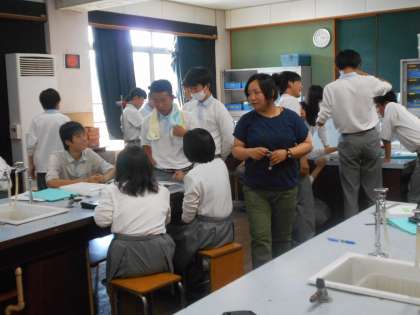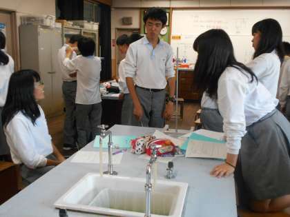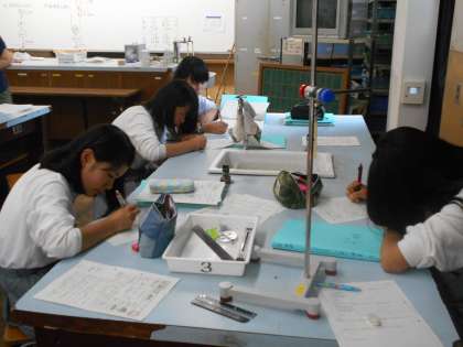 3年生は,まだまだ理科室での実験になれていませんが,声を掛け合って楽しく学んでいます。