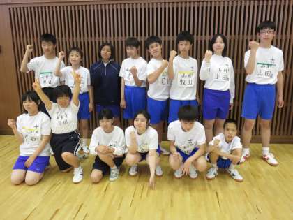 バレーボールが終わって,合同チームで試合した大宅中,安祥寺中のお友達と記念撮影です。