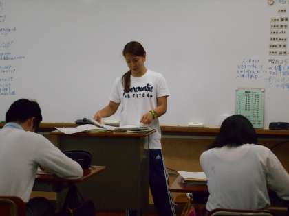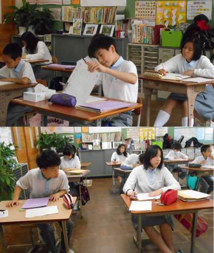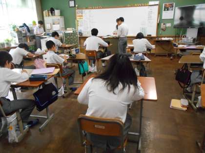 この日の授業は,いつもの分割授業ではなく,一斉に集まってテストに向けて勉強です。