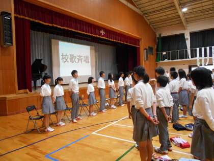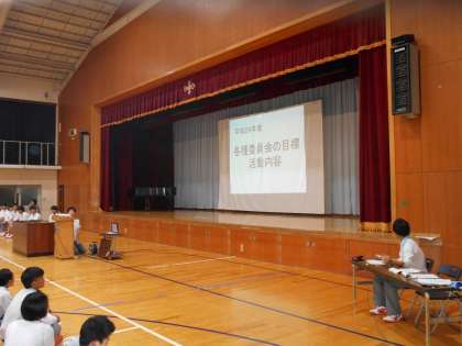午後からは生徒総会です。最初に全校で校歌を歌い意欲が高まります。