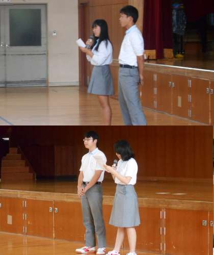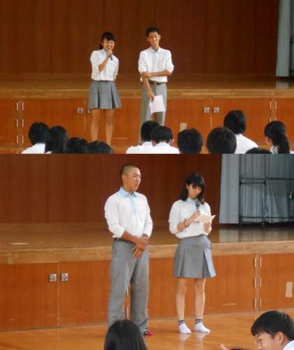 集会では各クラスから1期の良かったところとさらに努力するべきところについて一言ずつ発表がありました。