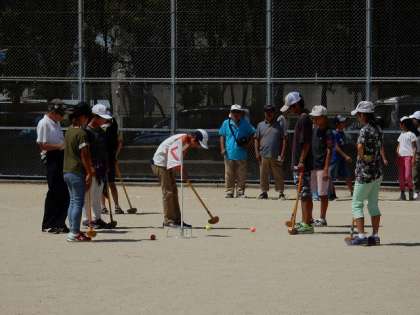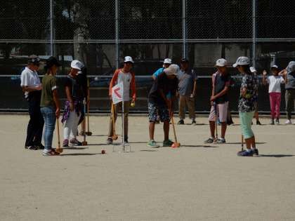 8月27日(日)9時から雲ひとつ無い晴天の中、第3回山科少年グラウンドゴルフ大会が開かれました。和やかで楽しいひとときでした。百々学区で参加してくれた様子を紹介します。