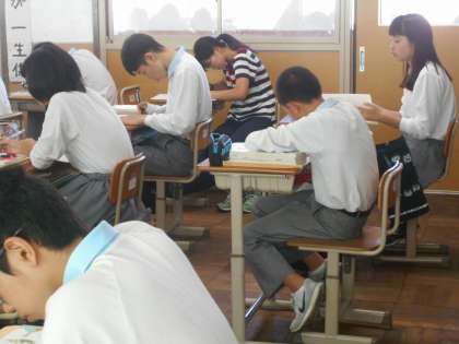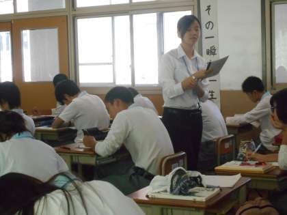 俳句の授業も少し慣れてきたようです。先生も生徒の近くで声をかけてくれています。