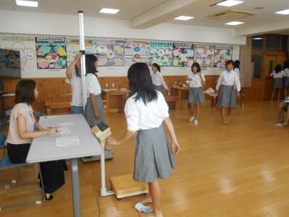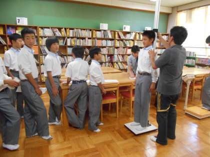 1年生の身体計測です。今日で3学年の計測と視力検査が終了です。