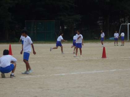 1年生の体育は、体育大会に向けて是認でリレーのバトン練習をしています