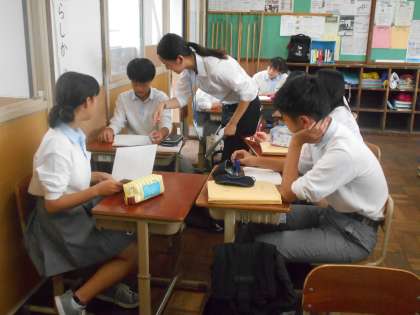 3年生の国語は俳句がテーマです。今日の授業ではグループになって活動しています。
