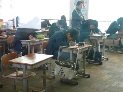 1・2年生、7組が校外学習に行き、3年生だけが学校に残り授業を受けた10月29日は「ノーチャイムデー」にし、授業の始まりと終わりのチャイムを切って授業を行いました。チャイムが鳴らなくても時計を見て自分たちで時間になったら教室に入り、大変落ち着いた雰囲気で授業をスタートさせることができています。授業中も集中して学習に取り組んでいます