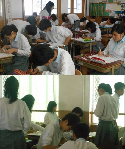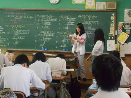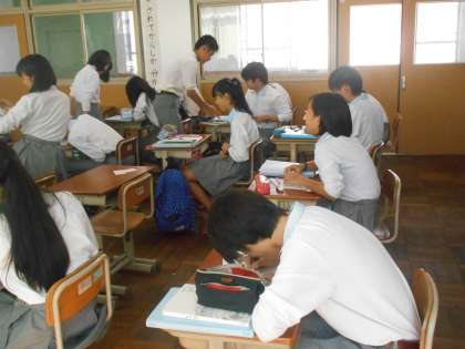 数学の時間では、上山先生のところへ行って、正解を認めて貰った人が、今度は他の生徒たちの○付けをしていきます。