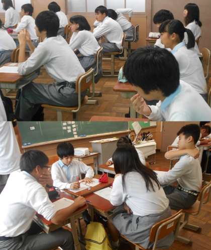 「カーテンの向こう」という読み物資料で意見を出し合います。