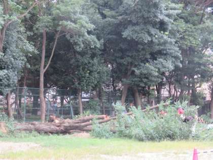 8月の台風で折れた桜の木をはじめ、グラウンド東側の大きな樹木を中心に10本ほど伐採しました。グラウンドが少し広くなったような気がします。