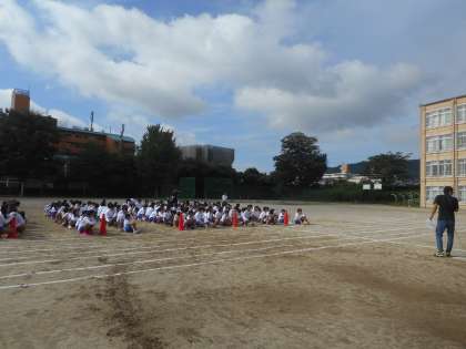 1年生の学年練習、足田先生の指揮の下、予行が進んでいきます。