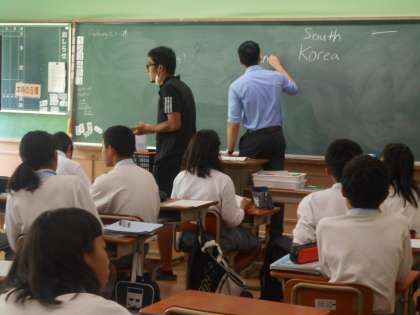1年生の英語、今日はALTのアンソニー先生との授業です。英語での発表も元気よく出来てます。