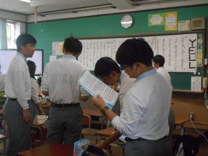 3年5組は教室と廊下に分かれて、パート別の練習です。