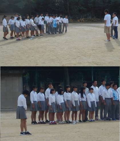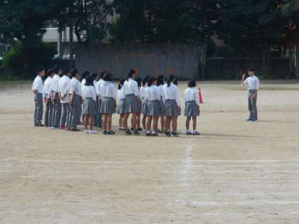 グラウンドに出ての練習が始まりました。今年は6組が一番乗りの勢いです。