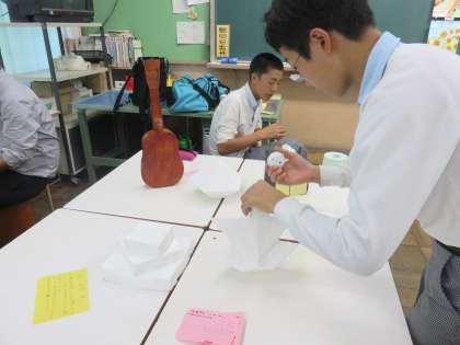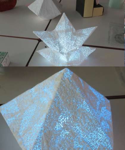 ランプシェードには実際に光を入れて貰いました。とても綺麗です。