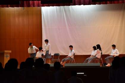 開会式では文化委員長の志村さんと私があいさつを行いました。オープニングは生徒会本部がちょっとした劇を披露してくれました。