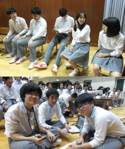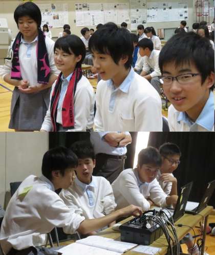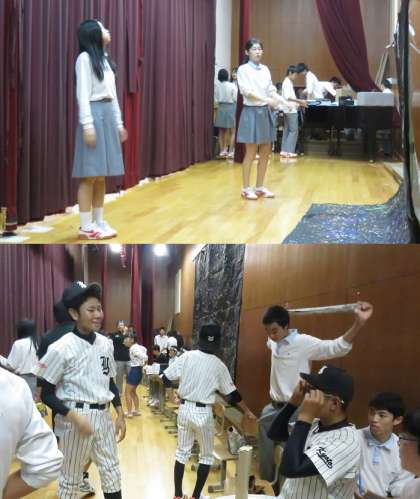 ステージの幕の内側と音響担当、エンドロール担当、照明担当のスタッフです。