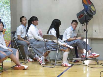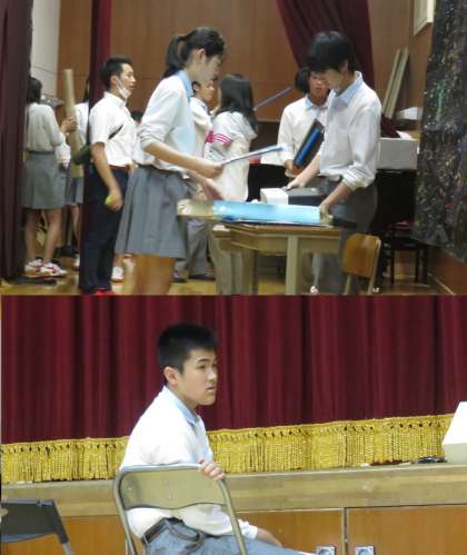 ギャラリーとサイドの照明担当、主演者とプロンプター役の生徒です。