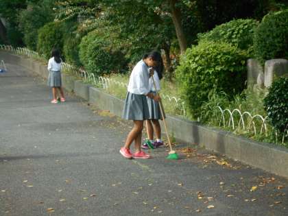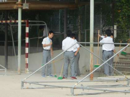 朝掃除〜男バス、陸上部女子