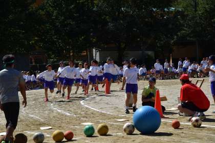 女子のラブラブレースです。ボールはいろいろな大きさがあります。