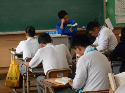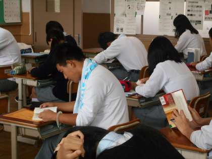 3年6組の読書のようすです。落ち着いた温かい雰囲気の教室で、チャイムと同時に静かに読書に取り組めています。