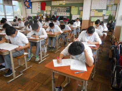 2年1組のテストのようすです。