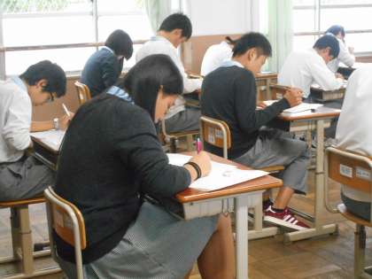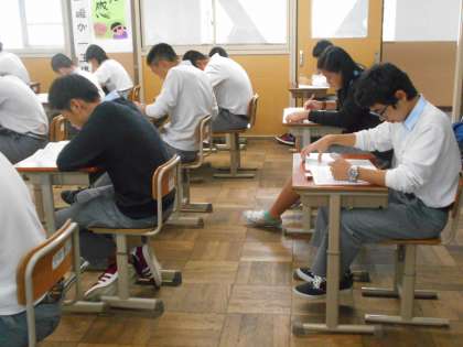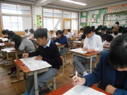 3年4組の英語のテストのようすです。