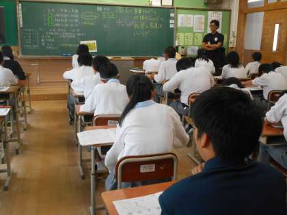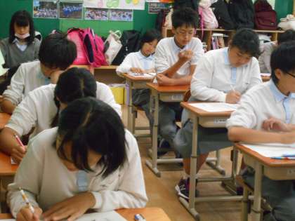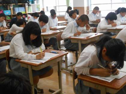 1年4組の理科のテスト風景です