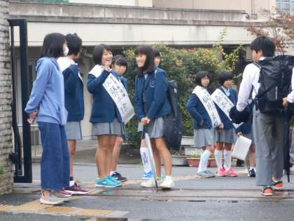 昨日の月曜日から生徒会選挙に向けた、朝の選挙運動が始まりました。
