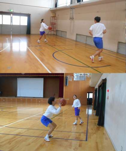 8組の体育はバスケットに取り組んでいます。