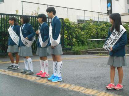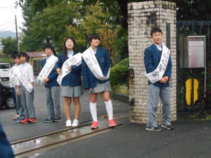 今朝もほとんどの候補者が早い時間から校門に立って、あいさつとアピールをしています。