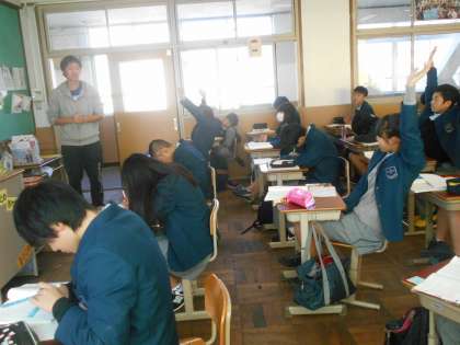 国語は魯迅の「故郷」がテーマです。グループでの話し合いの後、意見を交換しています。