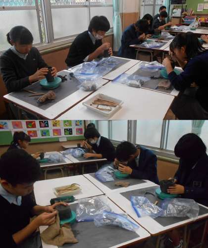 3年生は、ろくろを使って陶芸作品で器をテーマに製作しています。