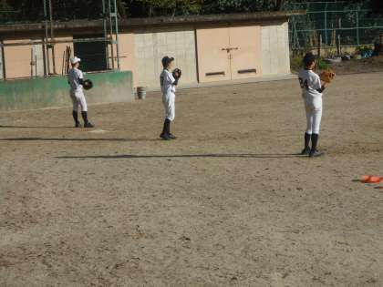 野球部はキャッチボールとバントの練習を行っています。