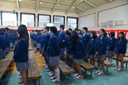 教頭先生の開式宣言のあと、平田先生のピアノ伴奏で国歌斉唱、校歌斉唱と続きます。