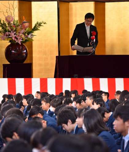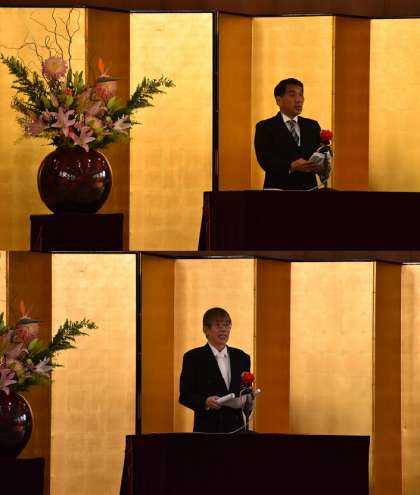 下岡校長の式辞、藪下実行委員長の祝辞のあと、京都市教育長の在田正秀様、山科区長の堀池雅彦様よりご祝辞を頂戴しました。