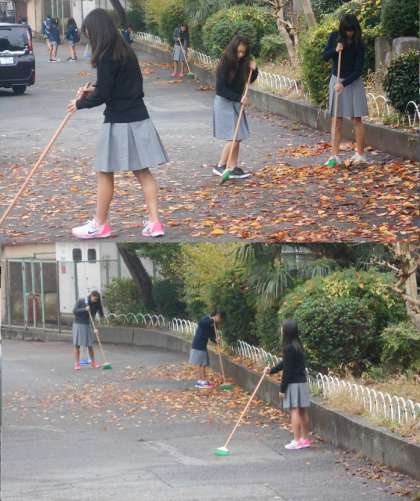 毎日凄い勢いで枯れ葉が散っていますが、陸上部も頑張って掃除してくれます。