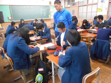 3年6組の道徳のようすです。3年生はいろいろな先生が各クラスで授業をしますが、今日は担任の山内先生です。