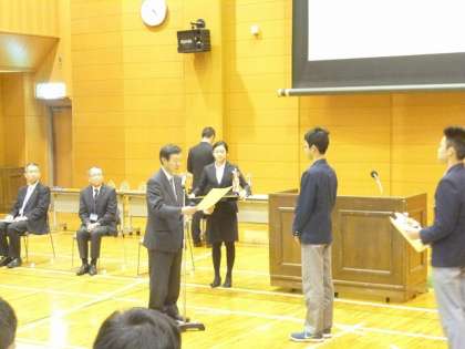 2年生の豊山君が、水泳の全国大会での活躍で、ジュニアスポーツ賞の表彰を受けました。 おめでとうございます!!