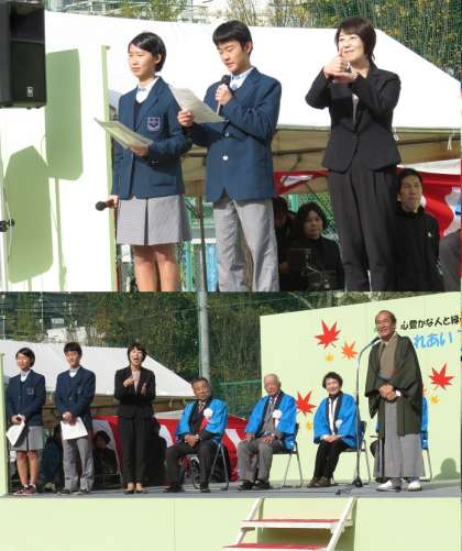 来賓の紹介や表彰団体の紹介は,普段使い慣れないことばや名称が多く,緊張したと思いますが立派にやり遂げてくれました。